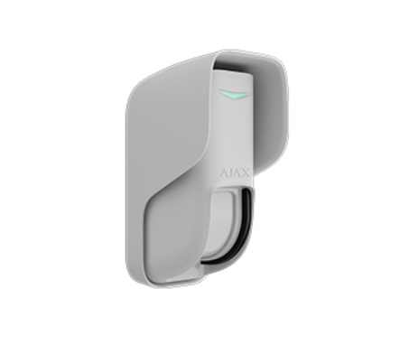 Ajax Curtain Outdoor, gordijn, narrowbeam-bewegingsdetector met Dual-technologie voor gebruik binnen en buiten, wit. 2x PIR + MW-detectie tot 12m. Max installatiehoogte: 2,4m, Batterij: 2x CR123A.