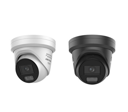 Hikvision 4MP Smart Hybrid Light met ColorVu WDR Turret Netwerk Camera met vaste lens, IR en wit licht , IP67, 2.8 mm, ingebouwde dual microfoon, NEMA 4X,AI ISP, audio I/O, alarm I/O, stroboscoop en audio-alarm,zwarte uitvoering.