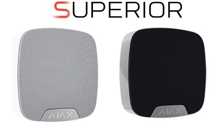 AAjax Superior Line HomeSirene, Draadloze binnensirene, wit, gecertificeerd. Geluidsvolumeniveau instelbaar, 81-105 dB op een afstand van 1 m, 2x CR123A batterijen, Afmetingen 75x76x27mm